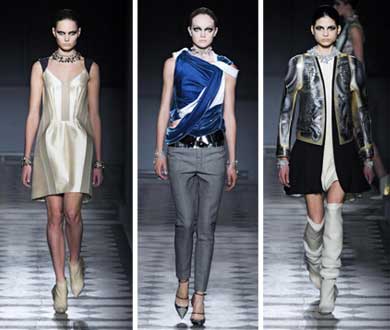 The store showcases the brands women’s ready-to-wear line, leather goods, shoes and accessories in a futuristic design perspective featuring gold and silver leaf display cases, created by artistic director Nicholas Ghesquière in collaboration with French contemporary artist Dominique Gonzalez-Foerster.