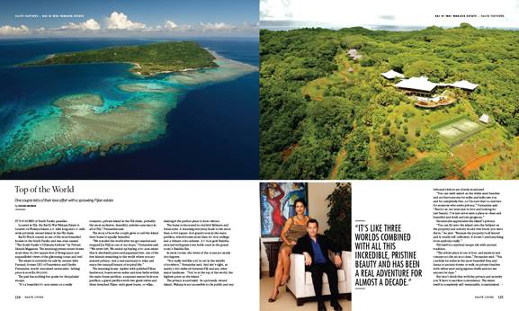 This issue of features a look at Rai Ki Wai Wakaya Estate in the Fiji Islands. Currently for sale, the regal estate is 20,000 square feet of unparalleled design, décor, and privacy.