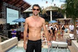 Olympic swimmer Michael Phelps spent his Saturday at a pool, but not swimming laps. He partied at Marquee Dayclub at the Cosmopolitan of Las Vegas taking in the sounds of DJs Matt Darey and Larry Tee. Phelps drank tequila and ate a Kobe burger at the hot spot.