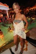 The trio was in town for Good’s birthday celebration. Getz glowed in a black-and-white striped bikini, ivory crocheted cover-up and extremely short denim cutoffs, while the boys showcased their sexy physiques in board shorts and the XS signature Manufactured Superstars black-rimmed nerd glasses. Getz tweeted about their exclusive VIP treatment, saying, “Coolest table at XS… Vegas wouldn’t be the same without this wonderful experience.”