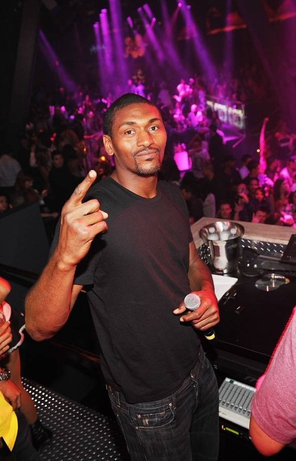 The always-entertaining NBA all-star and his large entourage took over Chateau’s exclusive VIP section and drank Grey Goose vodka and champagne while Lakers fans and party-goers snapped photos of the professional athlete. Later in the night, Artest got in Chateau’s grand marble DJ booth and grabbed the mic saying, “Make some noise,” to get the crowd pumped and sang along to songs like “Black and Yellow” by Wiz Kalifa and “I’m the Ish” by DJ Class featuring Lil Jon.