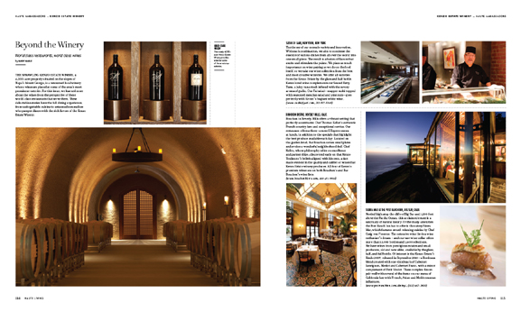 “The sprawling Kenzo Estate Winery, a 4,000-acre property situated on the slopes of Napa’s Mount George, is a renowned local winery whose wines are placed at some of the area’s most prominent eateries. For this issue, we learned more about the wines from the perspective of these world-class restaurants that serve them.”