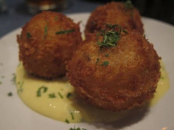But the menu boasts a nice array of innovative dishes including roasted beets and goat cheese, ceviche with Kahuku corn creme fraiche, deep-fried eggs with Calabrian chili aioli, smoked ahi-stuffed piquillos and fried arancini balls (above) filled with risotto and paired with a fried egg puree.