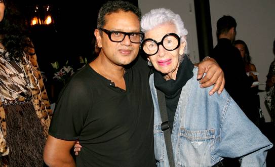 The newfound joint venture with Tissavel Tiger is a notable one, as the company works under strict terms with professionals and exclusive brands. This past Monday, August 15th, Khan invited a medley of VIPs, editors, and publicists to preview the collection. “I think we can be extremely successful with what we have here,” beamed the designer, as he explained his stylistic vision and the tailored cuts of the garments to attendees; boasting of Tissavel’s unparalleled quality. Guests buzzed around, cooing over the wonderful collection, with glasses of bubbly and canapés at the ready. A special visit from style-legend Iris Apfel (who will soon debut her own jewelry line for HSN) was indeed a rare treat.