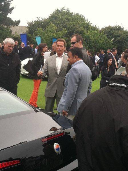 Later, I ventured to the golf course to take a look at the new concept cars from Lexus, Maserati, McLaren, Fisker, Ford, Lexus, Lamborghini and more. During my tour I got to meet Arnold Schwarzenegger, who was looking at the Fisker, the haute energy-efficient vehicle that was purchased by Leo DiCaprio last week in LA.