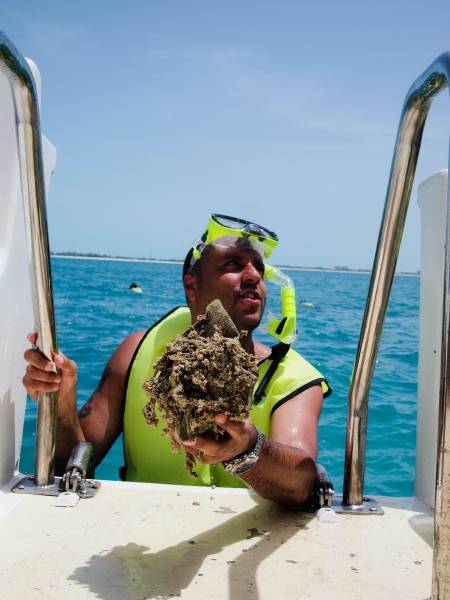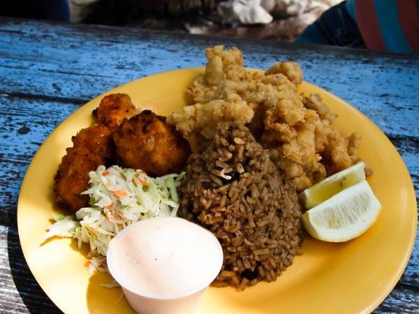 After Taylor Bay, we headed for some local food, the locals and fellow tourists we talked too, all raved about the Conch Shack. For something less touristy, venture about 15 minutes by car into the Blue Hills along the northwestern coastline. Da Conch Shack (Blue Hills Road; 649-946-8877 . Sitting on this beautiful, rocky beach, The Conch Shack serves up, what else delicious conch. It is also known for it’s famous Rum Punch. Jaden ordered yummy fish and chips. Joseph had a tasty, fresh stew Mahi, Manhi with rice and beans. We all shared a Conch platter, which consisted of fried conch fritters, conch hush puppies .. one word YUM !!!