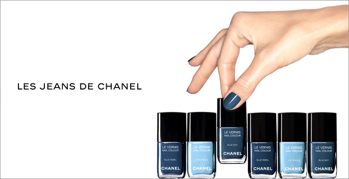 Today, Chanel is releasing an exclusive limited edition nail colour collection developed by Peter Philips, Creative Director of Chanel Makeup, in celebration of FNO. Les Jeans de Chanel features three blue-hued nail polishes, gradating from dark to light, similar a woman’s collection of jeans.