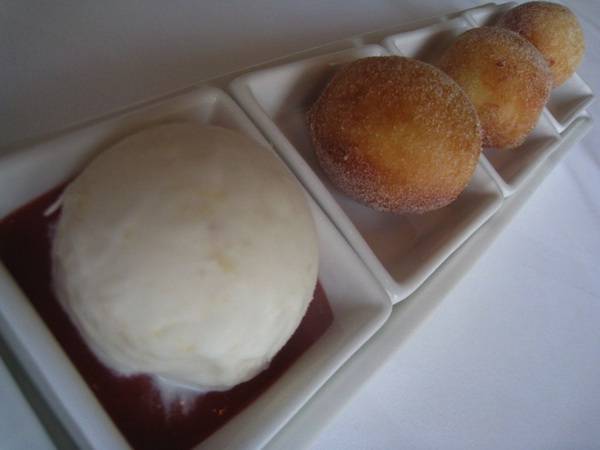 This is chef George “Mavro” Mavrothalassitis (@chefmavro)’s version of the traditional Portuguese dessert — really just fried dough doused in white sugar — and filled with tangy passionfruit. It’s such a popular item, it tends to stay on the menu, even when everything else changes.