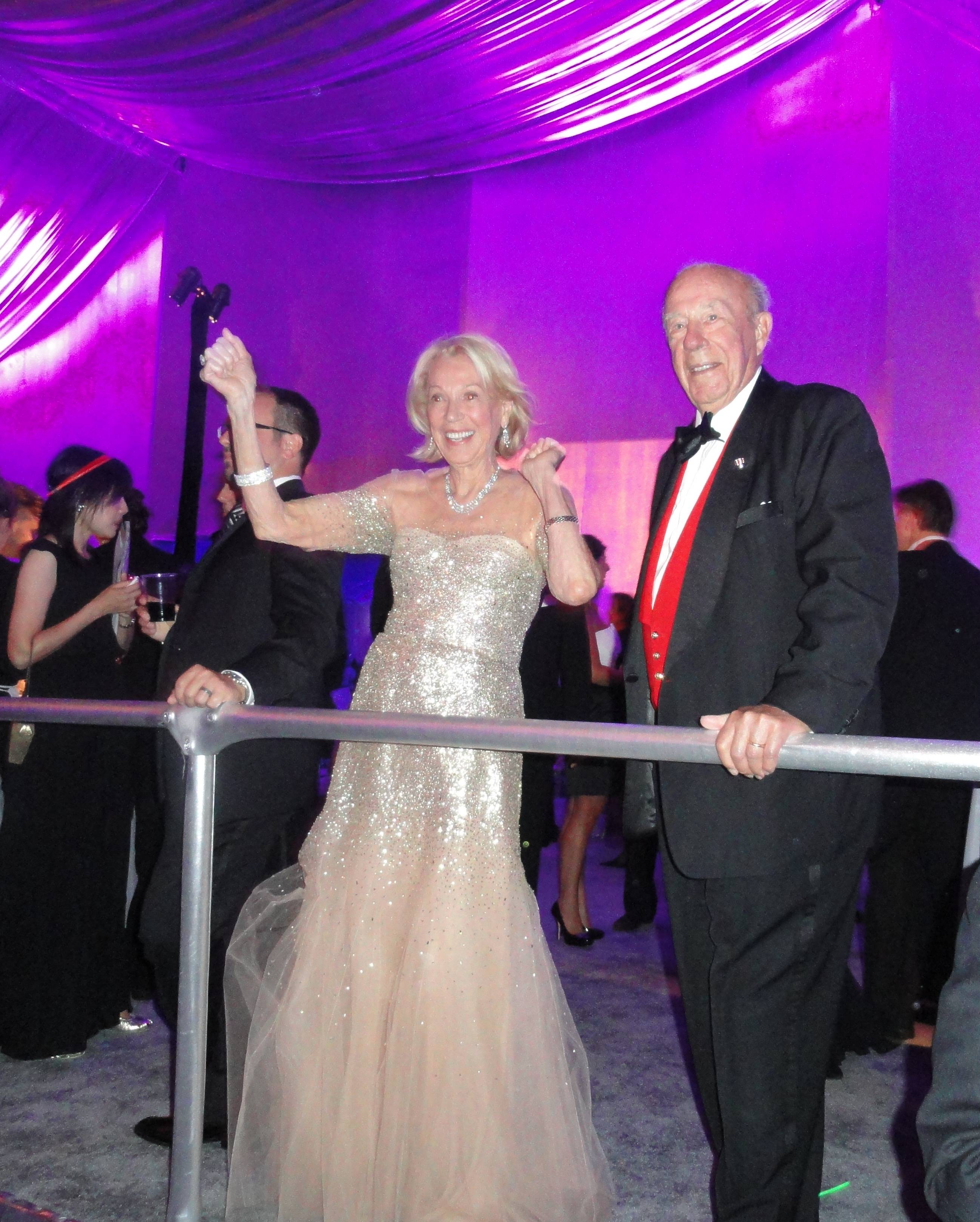This year, opening night was sold out many months prior to the event and there was even an extensive waiting list. Gala Chairmen Nancy Hellman Bechtle and Charlotte Mailliard Shultz were beaming from ear to ear greeting the guests and seeing firsthand the result of their hard work. I captured a photo of Charlotte excitedly waving her hands in the air with the music at after-party as she and husband George Shultz admired the festive guests.