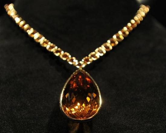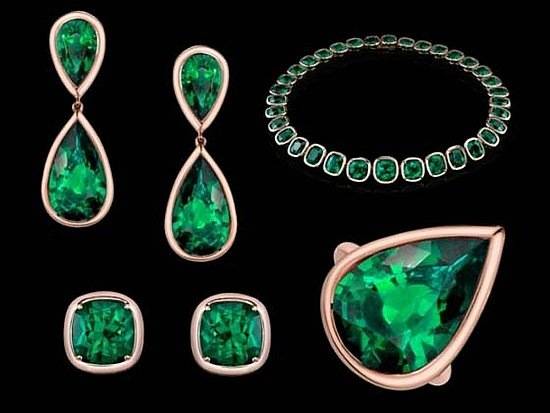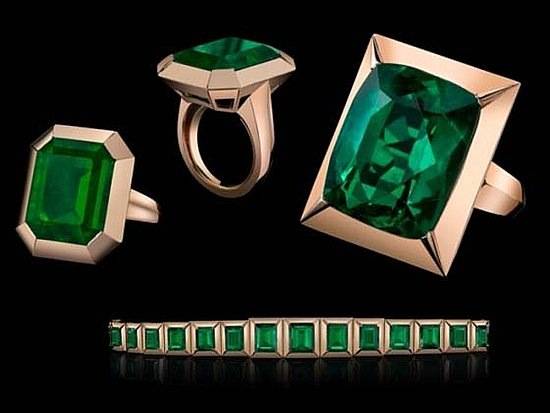The incredible collection includes dazzling pieces that have adorned the starlet on screen, off screen, and on the red carpet, including a diamond choker she wore in The Tourist, green beryl tablet earrings she wore for the premiere, a faceted black necklace she donned for the German premiere of Salt, and a stunning 27-carat Gem Columbian emerald ring she wore while directing her first movie in Bosnia.