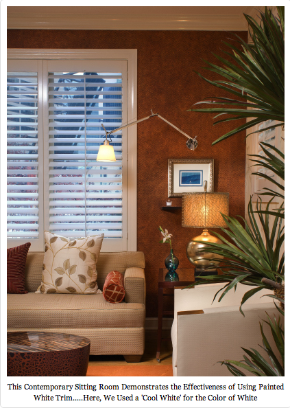 As it turned out, that original white that I used had a warm cast, and in fact, contained both yellow and red hues. For white to appear “white,” I needed to make sure that its color cast came from the green side of the color spectrum, (the opposite of red), and that it neutralized the red hue. So I repainted the trim Benjamin Moore, Decorator’s White, and all was good.