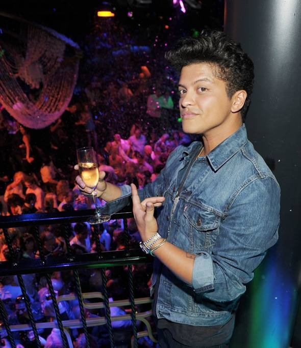 On Friday night, seven-time Grammy-nominated singer-songwriter Bruno Mars, who was in Sin City for the iHeartRadio Music Festival, treated party-goers to a special live performance at The Bank Nightclub at Bellagio. The superstar rocked the crowd, performing several of his hit singles including “Grenade” during which “The entire crowd club was signing along and waving lighters from side to side,” said an insider.