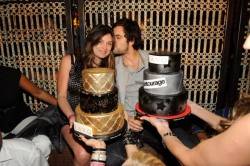 The couple was surprised with two cakes, one celebrating the culmination of the HBO hit series and one for Kat, who was celebrating her birthday. They toasted with Champagne as DJ Reach told the crowd “Entourage” was his favorite show. Later in the night Rhys joined Reach in the booth.