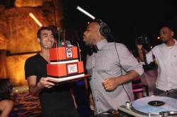 Midway through his set, a custom cake was delivered to his deejay booth situated in front of the venue’s signature 90-foot waterfall as servers waved Tryst-branded glow sticks and club-goers sang the honorary birthday tune. The multi-tiered orange cake was embellished with the Tryst logo and unique cake topper in the shape of the DJ’s headphones. Dupri raised a glass of champagne to toast the crowd for celebrating his birthday and providing unparalleled support over the last year.