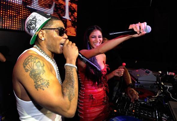 Scherzinger commented that she and Nelly were friends, and that the two have even spent some time in the studio together. Prior to their performances, Nelly and Scherzinger partied in connecting booths with their friends. Scherzinger danced on the booth and waved to excited fans, as Nelly smiled and showed off some dance moves when the DJ played some “old school,” including a mix of Snoop Dogg and Dr. Dre.