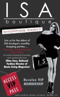 Tonight, ISA Boutique in Midtown is kicking off their monthly shopping parties, hosted by our National Fashion Director Jilian Sanz. From 6-8 pm, guests are invited to enjoy champagne and shopping. Stop by and be the first to find out about their VIP cards.