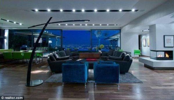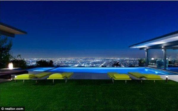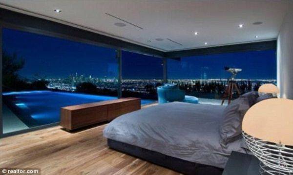 Perry’s new master bedroom is glass walled with views of his infinity pool and L.A. The living spaces have floor to ceiling glass windows enhancing the spectacular city views and there is a modern kitchen with plenty of contemporary appliances. There are two bathrooms designed in very different ways, the main one has a tranquil feel to it with garden views while the other is more extravagant with those black-mirrored walls and chandelier.