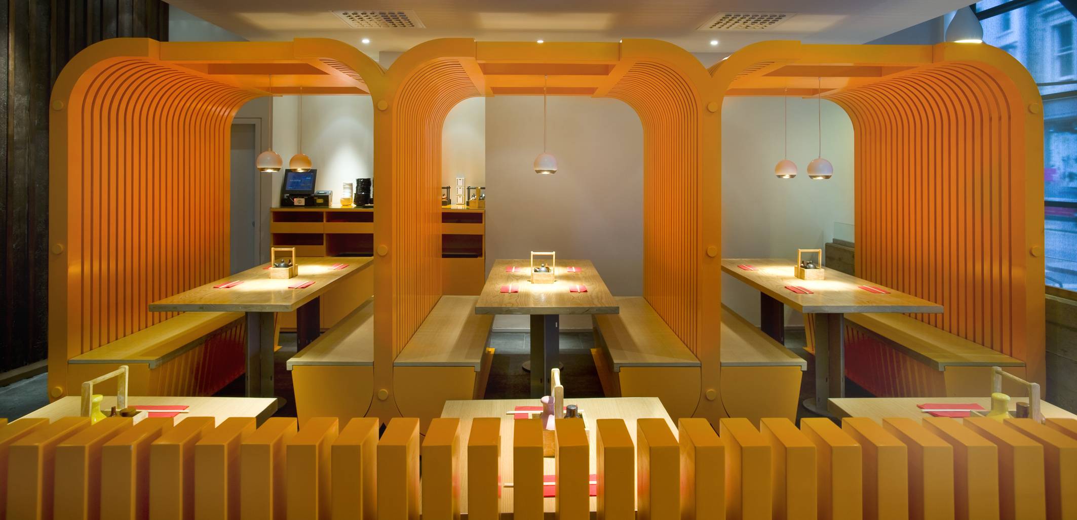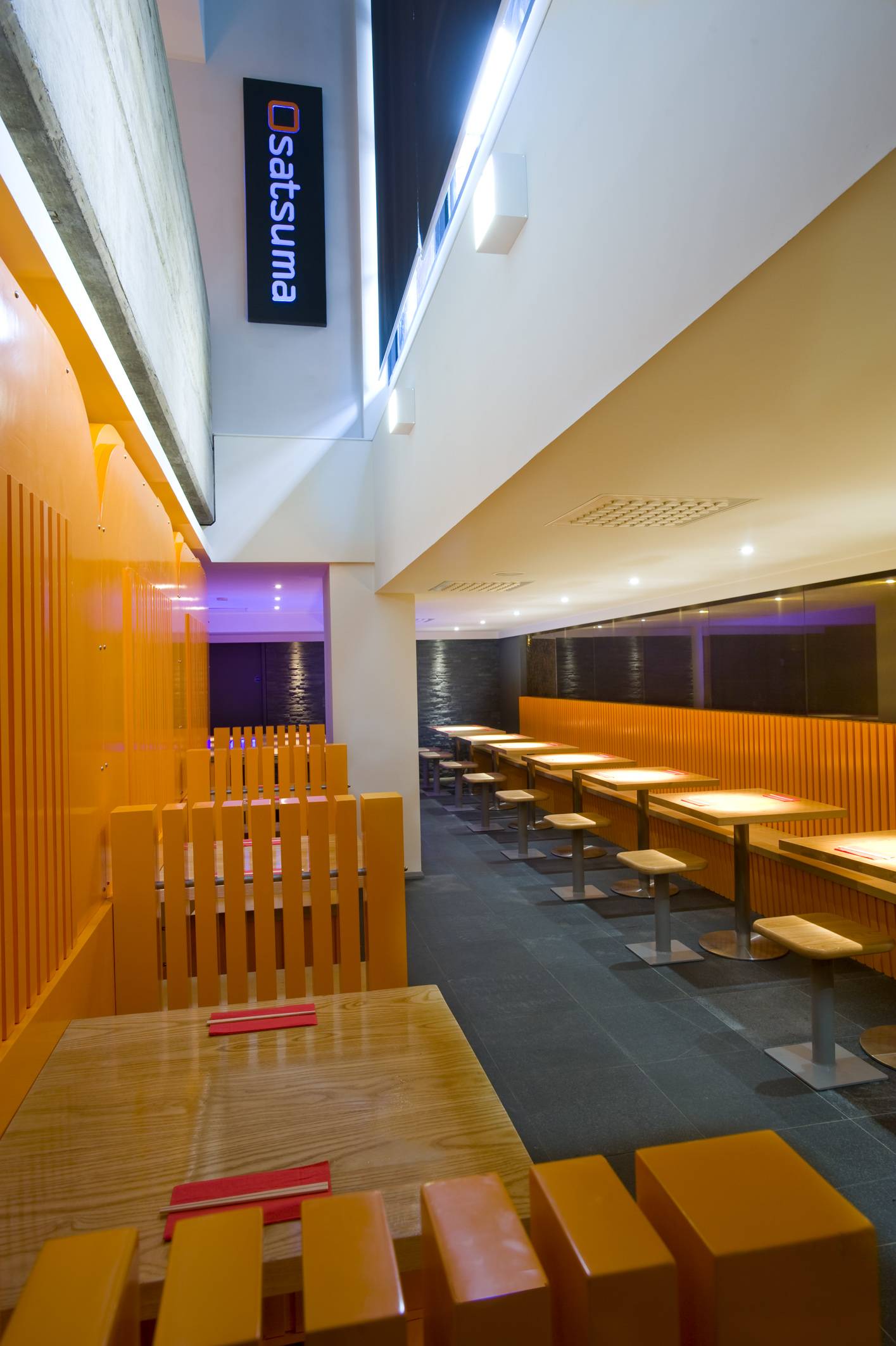 While the restaurant keeps Satsuma’s signature colour scheme of orange and grey and floor-to-ceiling glass frontage overlooking Soho’s quirky shops, the authentic Japanese eatery now features ultra cool pod style seating. The futuristic pods, which can seat up to four people, are enclosed on four sides with windows in the roof to allow in subtle lighting.