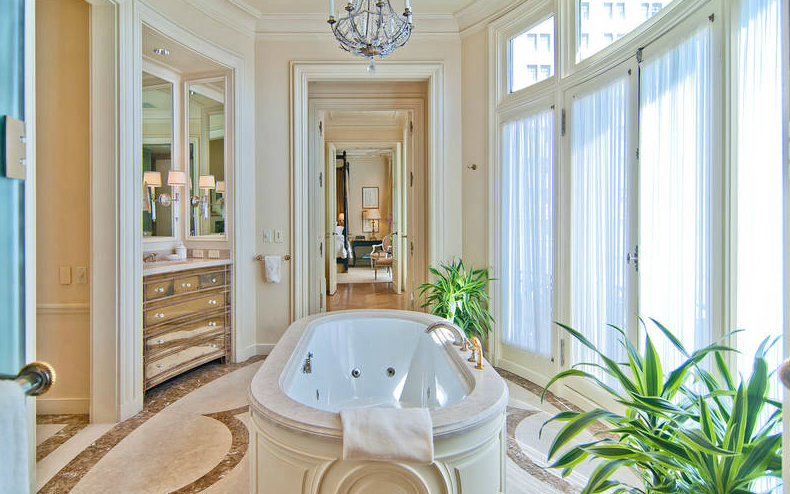Featured in Architectural Digest (as well as recipient of numerous awards) after a complete remodel in the late 90’s by architect Andrew Skurman and interior designer Suzanne Tucker, this represents the ultimate in urban San Franciscan living. The bathroom however is what really seals the deal…with HOA dues at $6k I would need a good soak too. Asking $5,495,000.