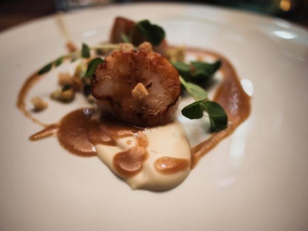 Catch is a  tri-level seafood tower . We were escorted upstairs to the glass penthouse on the roof. A lounge-like space with reflective gold brick and leather banquettes. Glasses of white wine awaited us at the bar and passed hors d’ oeuvres. I had my first tasting of fried oyster with a dollop of caviar. If only my husband Joseph was there to witness this. I was in the presence of foodies. I had to eat the oyster and put to rest my peculiarities about certain foods and textures. It tasted yummy! 45 minutes into the event, we were led into the elevator and on to the main dining room featuring a spectacular open air kitchen. Judia and I were seated with two lovely  companions we met at the – event, Betty a self confessed foodie and cardiologist and Peter, a gentleman who sells food enzymes. The next day, my most capable and knowledgeable companion Sommelier  and foodie Judia Black and I got together to chat about our night and what we thought about the different courses and wine pairings.