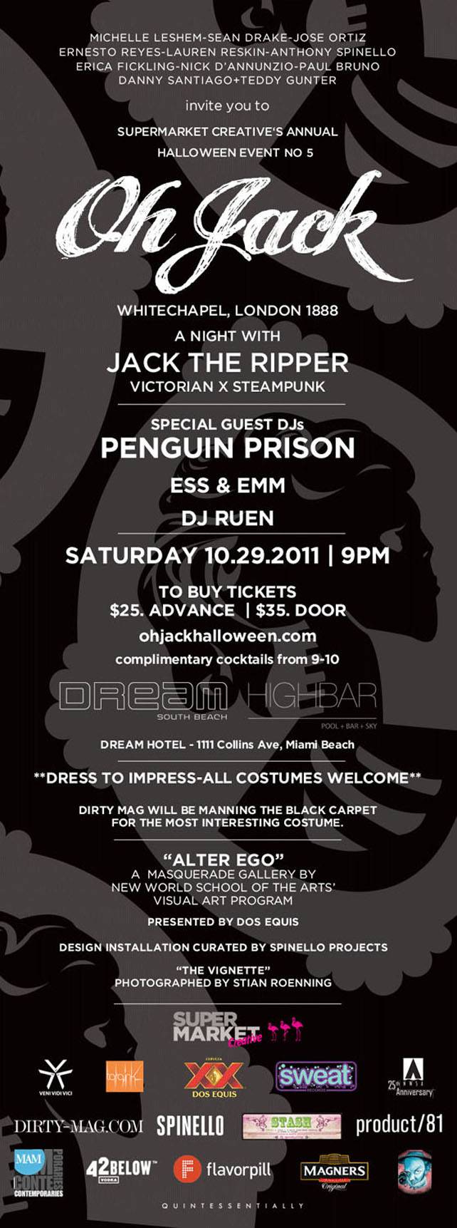 Get your best costume ready for the ultimate Halloween party on South Beach: “Oh Jack” at HIGHBAR, the rooftop lounge at the Dream South Beach. Co-hosted by event company SuperMarket Creative, the Jack-the-Ripper-themed party will transport guests to London circa 1888.
