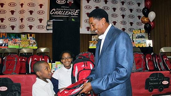 Chicago Bulls legend Scottie Pippen and other Bulls members teamed up with Kia Motors to organize a rally on Wednesday, Oct. 19 to deliver much-needed school supplies to students at Victor Herbert Elementary School in Chicago.