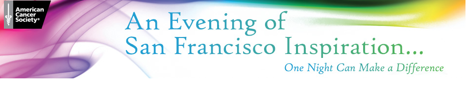 The American Cancer Society is a remarkable cause dedicated to aid people facing cancer. Your support of An Evening of San Francisco Inspiration…One Night Can Make a Difference “will be one night that can make a difference and help to save lives from cancer by providing much needed funding for research, education, advocacy and patient services. With your help, we will reach our goal of prevention and a cure in our lifetime.” For more information on how you can participate, visit An Evening of San Francisco Inspiration…One Night Can Make a Difference.