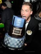 Strickland, looking sharp in an all-black suit, celebrated his birthday in style alongside his boyfriend Todd Dubail, best friend and “Peepshow” starlet Holly Madison, “Absinthe” starlet Angel Porrino and more. The handsome entertainer was surprised with a three-tier striped and checkered red velvet black and blue birthday cake as he sipped on champagne and posed for pictures while holding down the head VIP table.