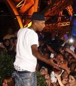 As soon as Pharrell arrived to the packed nightclub, he hopped on top of his VIP booth to greet excited fans. With all eyes on the multi-talented artist, Pharrell hit the stage in front of the deejay booth for his performance and yelled to the crowd, “How’s everyone at Chateau Nightclub tonight!?” With a snap decision to do his performance from the platforms behind his VIP area, Pharrell used the entire area as a 50-foot-plus catwalk as he kicked the set off with his hit song, “Nothin’.” He also sang a cover of Jay Z’s “I Just Wanna Love You (Give it to Me),” his hit songs with Snoop Dogg “Drop it Like It’s Hot” and “Beautiful,” and a cover of Nelly’s “Hot in Herre,” which was produced by Pharrell as part of the Neptunes duo. Throughout the set, Pharrell continued to make his way around the platform behind the VIP booths, stopping to sing to excited female fans as he made his way around the club.