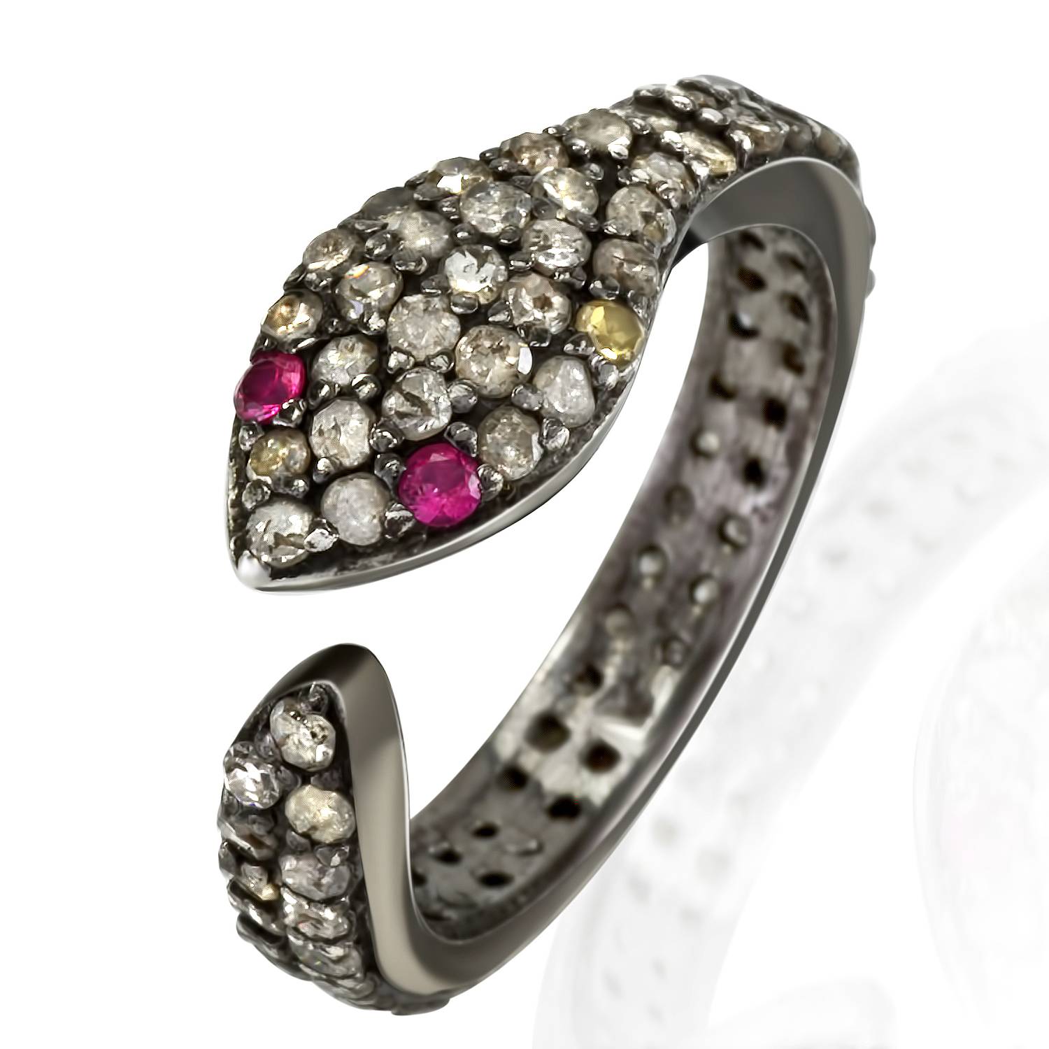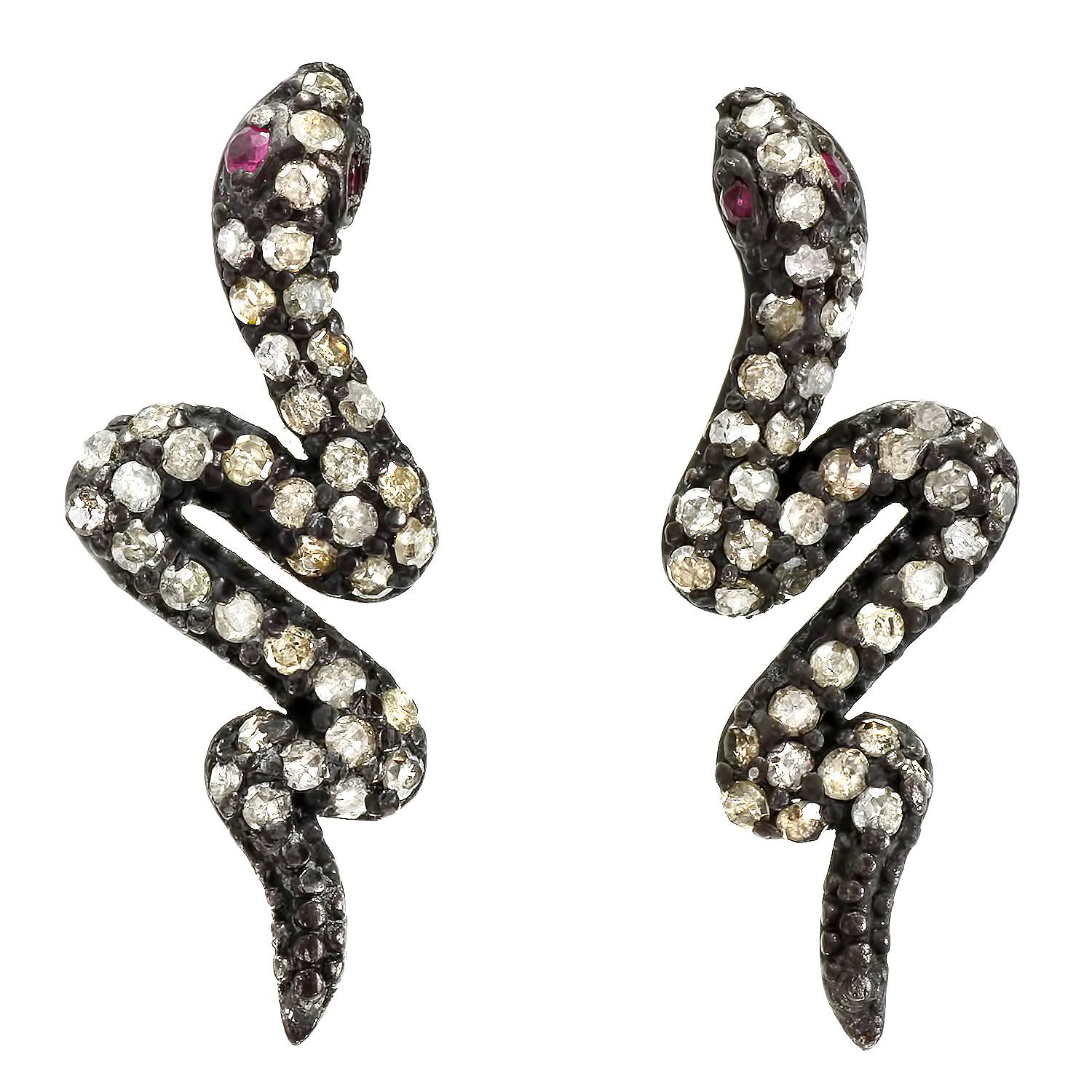Elodie K jewels recently adorned pop star Miley Cyrus at this year’s Video Music Awards. Miley, who owns the pieces herself has been seen photographed in the snake knuckle ring in both black silver diamond and rose gold ($440) along with the black silver diamond snake earrings ($660). All the snakes have piercing ruby eyes.