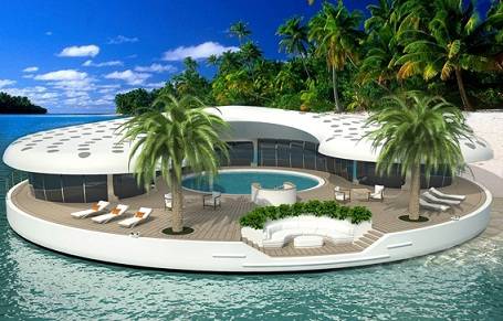 How does a luxury island owner get to their new ocean getaway off the coast of Dubai? In an ‘Ome’ of course – a floating villa designed to drift back and forth between the mainland and The World islands … once they are complete, that is.