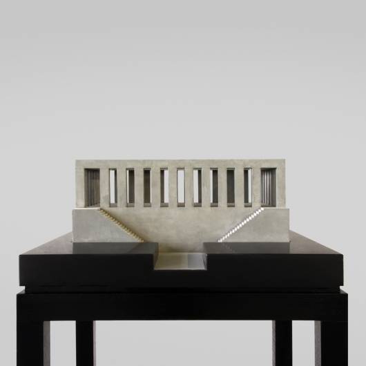 Libido Moriendi is a Latin phrase that means the noble “death wish” of the Stoic philosophers and the Freudian counterpart to the libido, the “death drive.”  In Nicolodi’s architectonic sculptures, libido moriendi is not explicit, but intertwined with another Freudian concept, Das Unheimliche, or the uncanny.  The vaguely archetypal monoliths created with cement and wood, register as familiar structures, but also resonate with the underlying and unconscious mechanisms of cognition: a dissonance from which the uncanny is born. Formally, these sculptures bridge classical architecture and the high modernism of Le Corbusier, via the neoclassical architecture of Étienne-Louis Boullée and Claude Nicolas Ledoux.