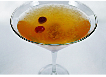 This strong festive conoction features Spiced Botran Solera Rum, sparkling sake, and cranberry juice. A few whole cranberries are added to float and garnish for the perfect Thanksgiving trimming.