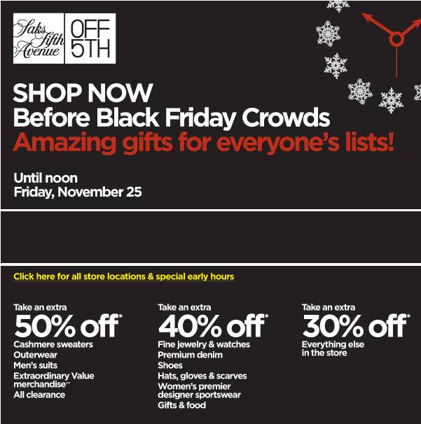Black Friday Shopping Incentives at Neiman Marcus, Saks Fifth Avenue, Barneys and Nordstroms