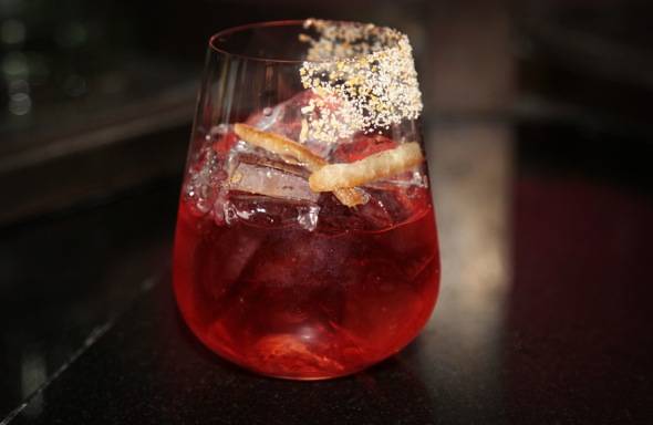 Served on the rocks with an orange cinnamon rim