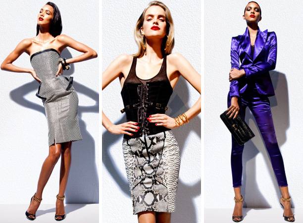 The collection is unmistakably Ford with sexy yet refined looks for women that make exquisite use of edgy yet tasteful embellishments and materials like leather, feathers, fringe, and snake print, with some pieces taking on a spicy Spanish flair.