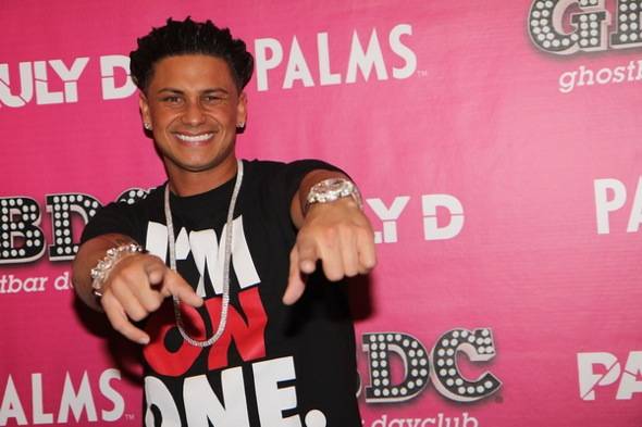Ghostbar dayclub, known as GBDC, returned to the Palms yesterday featuring the talents of reality TV sensation DJ Pauly D. Greeted by a swarm of fans as he entered ghostbar, Pauly D made his grand entrance and GBDC debut among beer bongs, explosive confetti and hot girls, creating daylife debauchery at its finest. DJ Pauly D took a swing at a very special piñata that was created for him, a giant stuffed party favor that resembled Pauly’s face and signature hair.  Fans were fist-pumping in unison to DJ Pauly D’s beats throughout the afternoon. Also at GBDC, 2010 Miss USA Rima Fakih made an appearance.