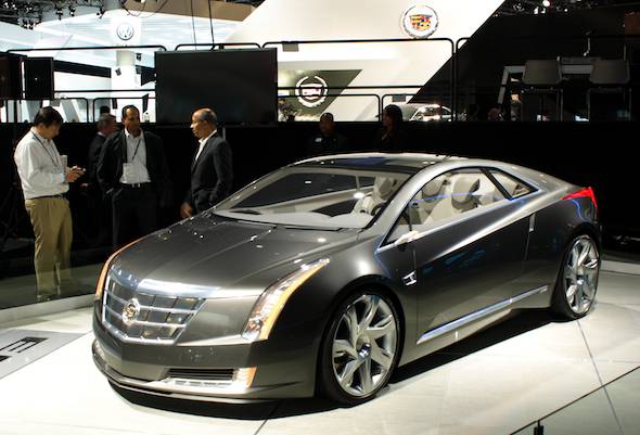 Cadillac’s Converj concept car, the Standard of Excellence’s 2-year-old entry in the electric/hybrid segment, was approved for production last August with the name ELR (a not-so-creative abbreviation of electric). Details remain murky, but the car will feature an extended range hybrid drivetrain, not unlike those offered by Fisker or the Chevy Volt. That is, when the battery runs low after a limited range of electric-only driving, a gas-powered generator kicks in to add extra juice. In the photo, GM VP of Global Design Ed Welburn explains some of the car’s finer point to a couple of journalists.