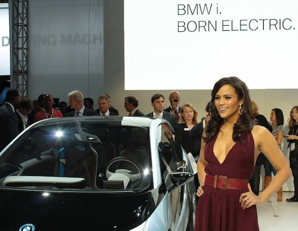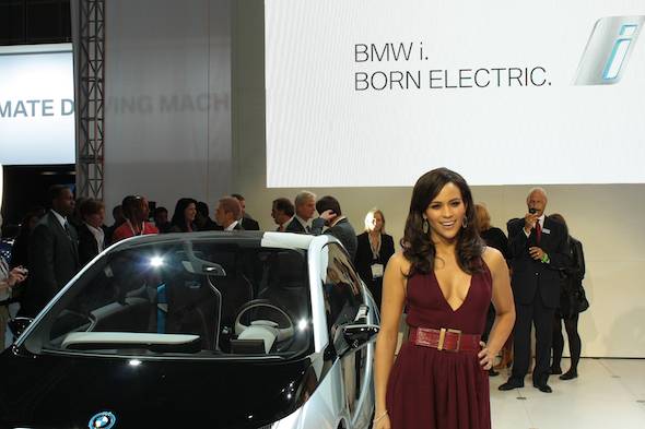 Dazzling the show, actress Paula Patton took the floor to announce the North American debut of BMW’s new i concept cars, the i3 and i8. Both cars boast cutting-edge electric/hybrid powertrains and barely-realized driver interface technologies, and have long been in development as part of the manufacturer’s Vision Efficient Dynamics design program. Patton’s appearance was no random celebrity appearance, however. As the co-star of the upcoming installation in the Mission Impossible film franchise, Patton got to ride around on camera in one of the original Vision Efficient Dynamics concept cars, a direct predecessor of the i8. In fact, BMW introduced the actress with a revised trailer for the film depicting her and headliner Tom Cruise furiously operating the car’s imaginary hologram windshield displays to presumably outrun bad guys and save the world. Patton’s story of her struggles to remain calm while enduring harrowing drives in the car with Cruise behind the wheel provided a welcome respite from the day’s barrage of technical details and car talk.