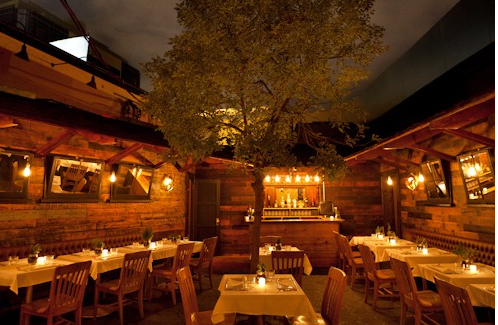 Sherbourne, the sleek-meets-earthy restaurant from Guy Stakman and Darren Dzienciol of The Beverly and Trousdale, will open on Thursday. The indoor/outdoor restaurant designed by John Sofio of Built, Inc. features reclaimed wood, suspended light bulbs and plush, plush tufted booths, and an actual tree in the middle of the dining room.