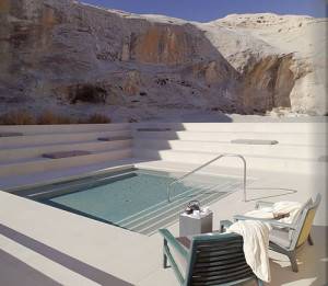 The Aman Spa at Amangiri Resort is a 25,000 foot space that personifies serenity and tranquility. The design of the spa is inspired by the nearby slot canyons, and features a glass tiled, sky-lit reflection pool and a central fireplace.