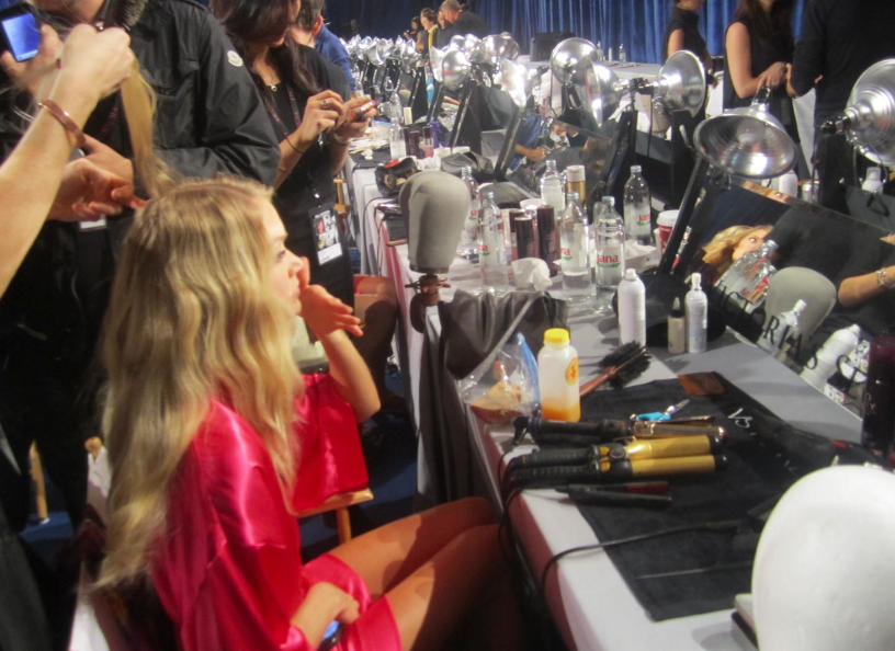 Haute Living caught up with the beautiful Angel Alessandra Ambrosio backstage. She dished about her pre-show workout regimen—yoga, Pilates, or gym every single day for the two weeks before, and a healthy but nourishing diet. Her make-up artist told us that this year’s look is all about the eyes; heavy, smoked out eyes but the rest of the face and body were left natural— he demonstrated this by sweeping a hand along the Angel’s leg and revealing a lack of glitter or shimmer. Ambrosio revealed plans to celebrate with the rest of the Angels post-show, and hopes of eating French fries at Matisse for lunch before she leaves New York. But the hautest place in New York, according to Alessandra Ambrosio, is backstage with the Angels.
