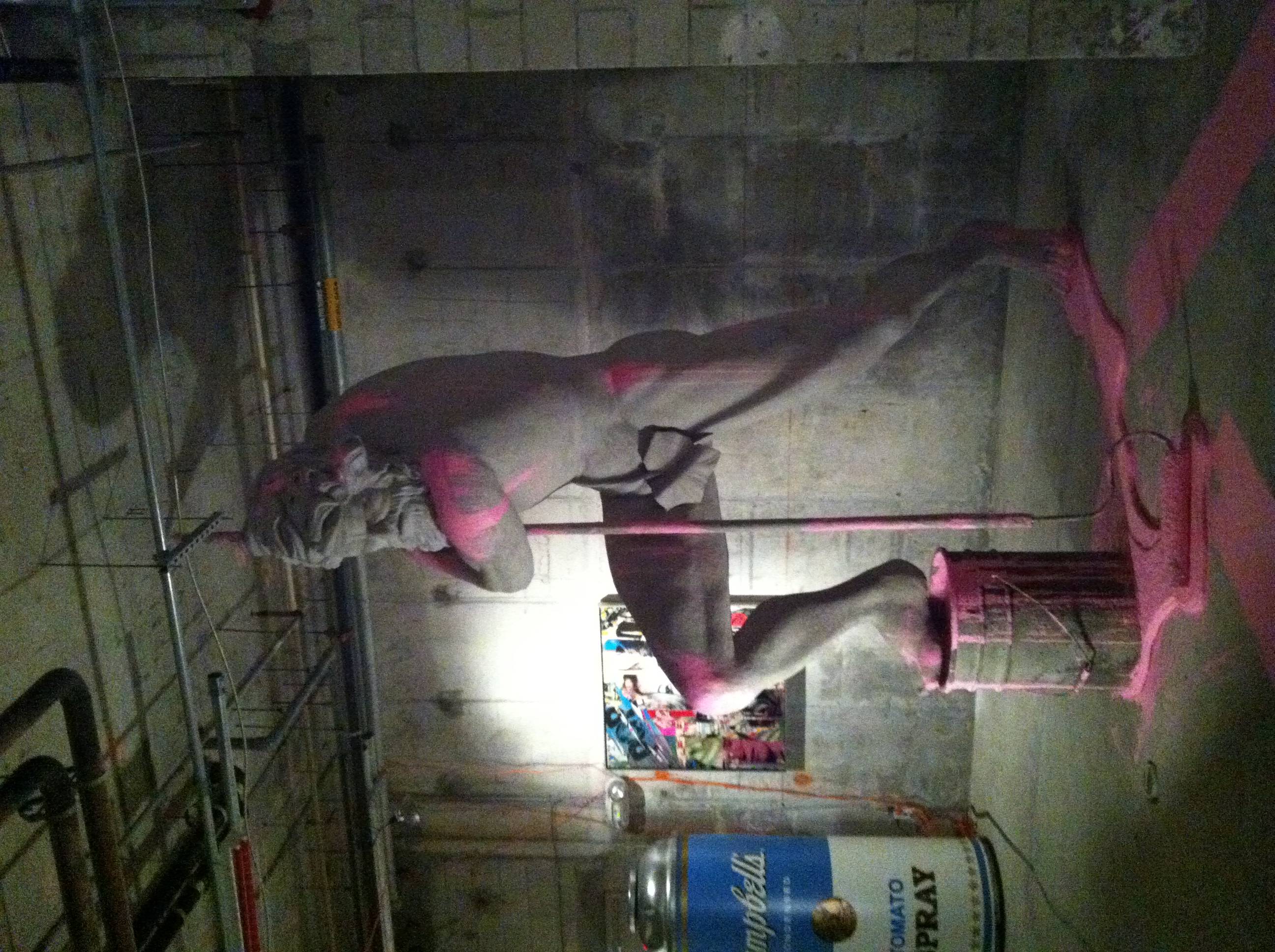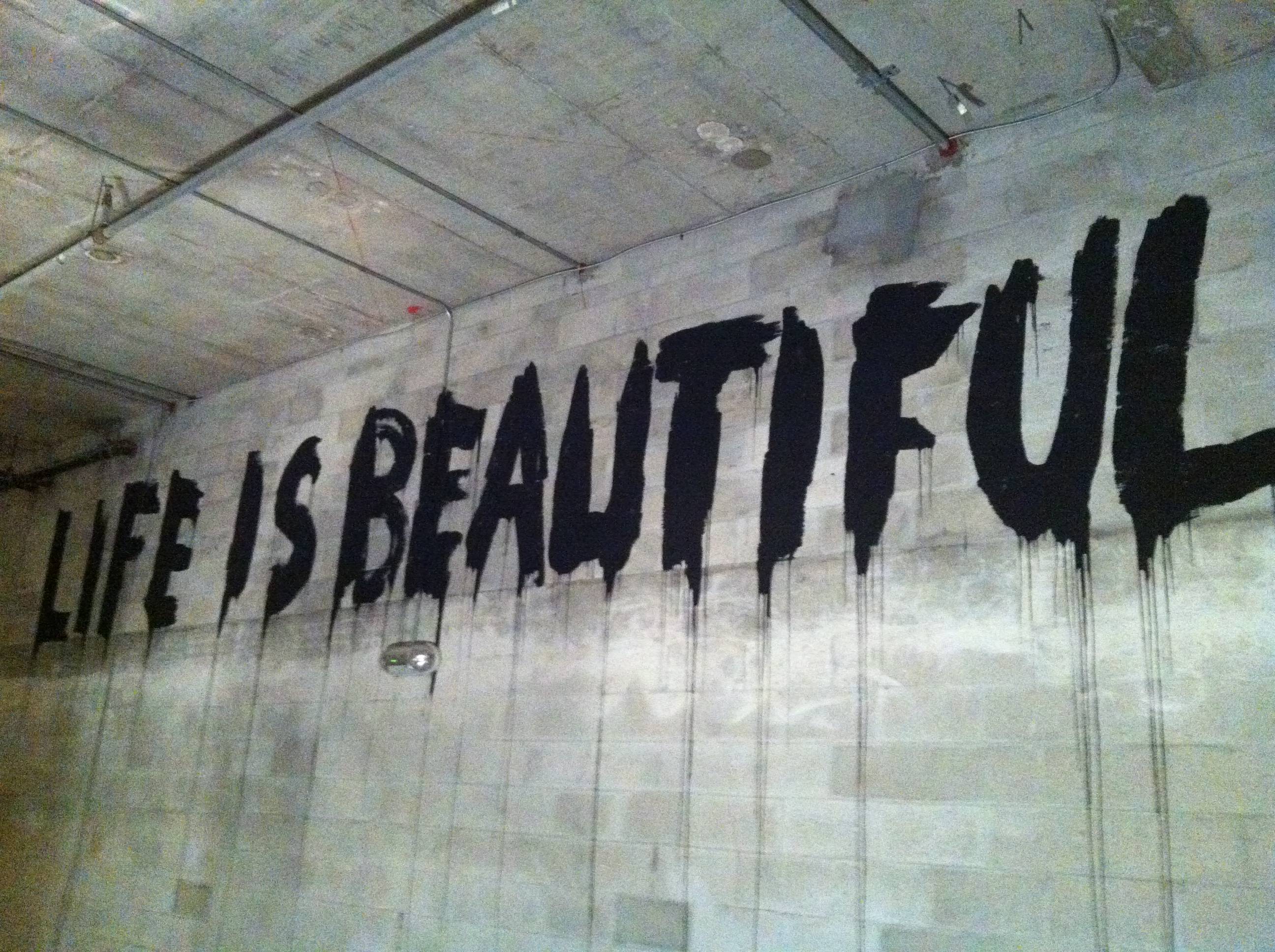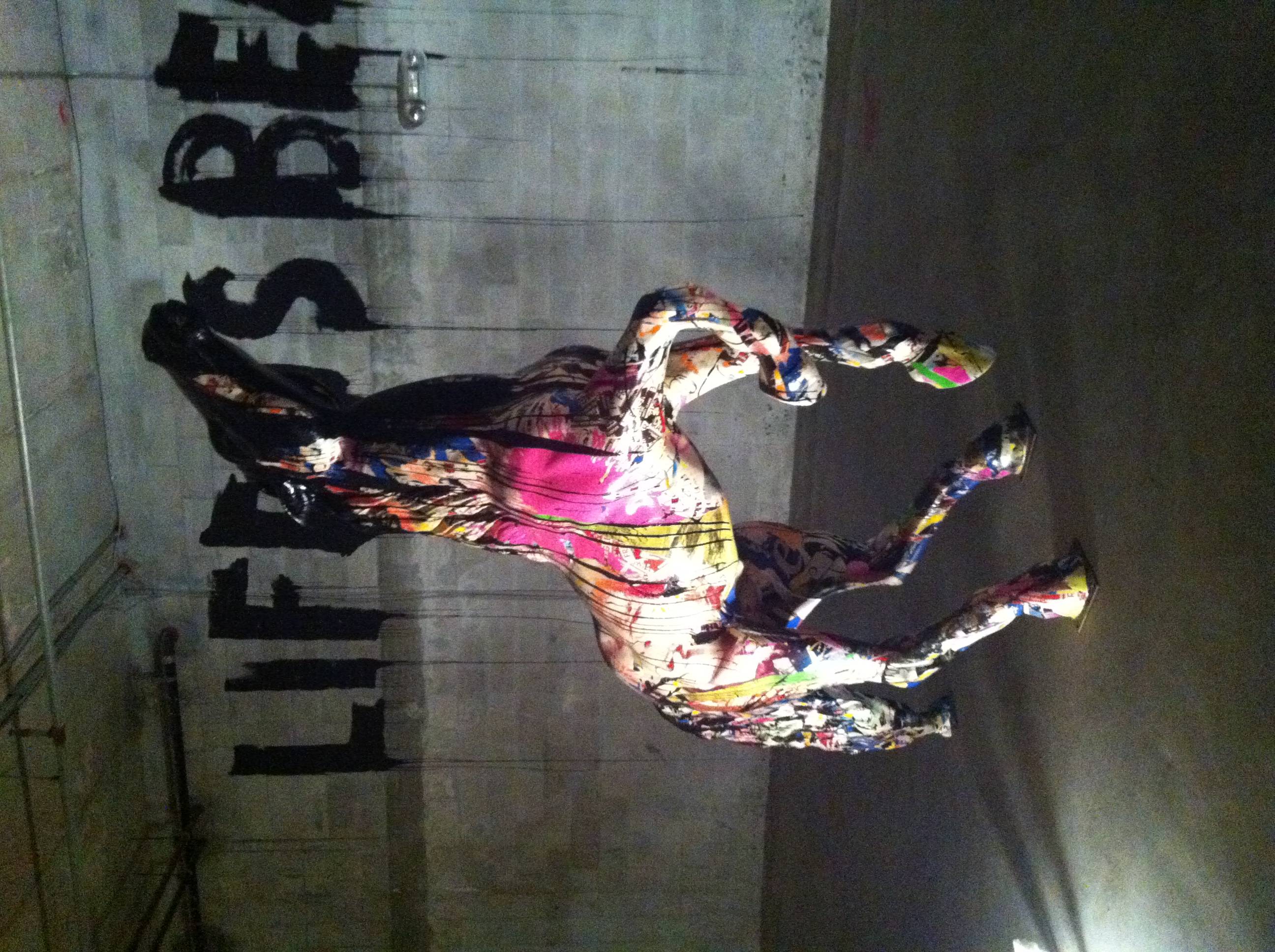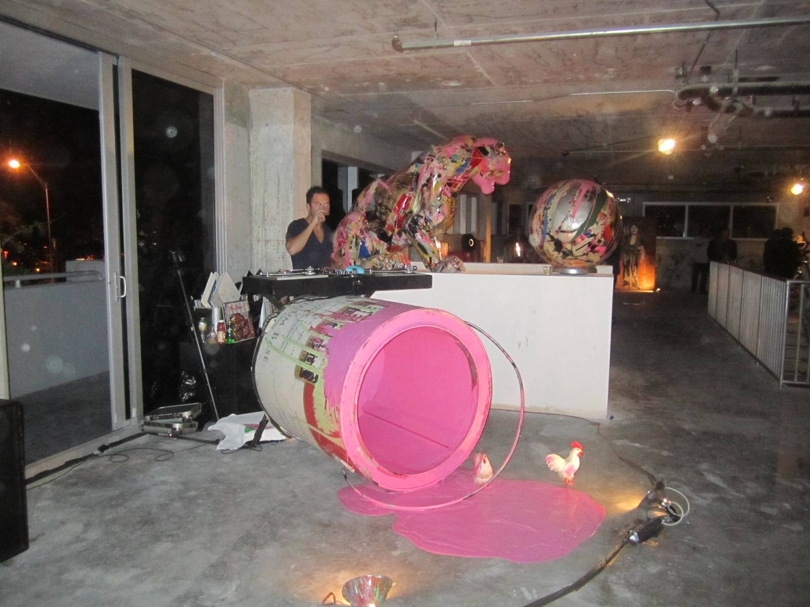 With the exhibition held in an industrial space, the grandiose sculptures and bright paintings stood out against the raw backdrop. Mr. Brainwash mingled with guests and encouraged them to purchase prints of his work, as they make for “great holiday gifts!”
