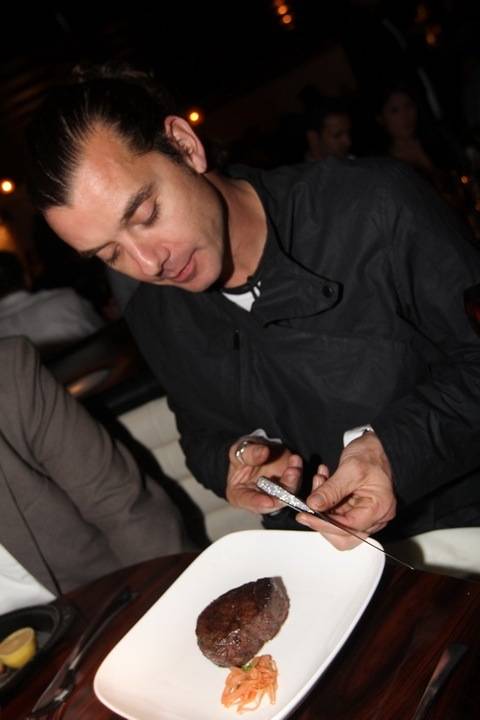 Singer Gavin Rossdale stopped by STK Las Vegas at the Cosmopolitan of Las Vegas last night along with the rest of his Bush band mates. He dined on a Wagyu beef filet using the exclusive STK diamond encrusted steak knife, valued at $15,000, which contains five carats of diamonds designed exclusively for STK Las Vegas by Jason’s of Beverly Hills. His party also enjoyed beef and tuna tartar, seafood platters, King crab and Dover sole.
