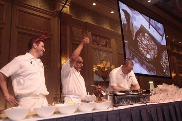 The Venetian and the Palazzo presented the fourth annual Carnival of Cuisine today with more than 15 restaurants and eateries including five chefs who won James Beard Foundation awards. Guests enjoyed palate-pleasing dishes from restaurants such as B&B Ristorante, Bouchon, Café Presse, Carnevino, Delmonico Steakhouse, Otto Enoteca Pizzeria, First Food & Bar, Grand Lux Café, Lagasse’s Stadium, Morels French Steakhouse & Bistro, Pinot Brasserie, SushiSamba, Sweet Surrender, Table 10, Valentino, The Venetian and The Palazzo Catering, ZINE Noodles Dim Sum and Zeffirino Ristorante.