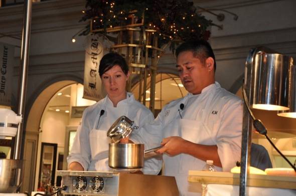As part of the Venetian and the Palazzo’s Winter in Venice celebrations, Wolfgang Puck’s Las Vegas director of pastry Kenny Magana and the pastry chefs from Postrio Bar & Grill and Cut hosted a candy cane and flavored marshmallow cooking demonstration today. Guests gathered in St. Mark’s Square to watch and learn how to make the tasty treats, ask Chef Magana questions and sample the finished desserts.