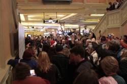 After stopping to roast chestnuts with the Palazzo’s chef Sammy DeMarco of First Food & Bar, Smirnoff checked out the Strip’s only ice skating rink situated a top the Venetian’s outdoor canals. She gazed at the disco ball above and raved, “You can even go skating under your very own mirror ball trophy!”