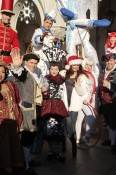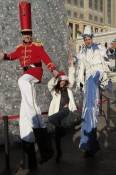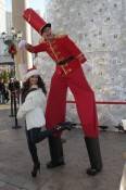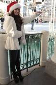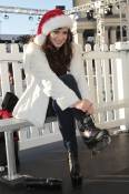 The dancing starlet, who arrived in a Santa hat, looked stunning in Versace shoes and a Dennis Bassco for QVC white faux fur jacket as she sipped on hot chocolate and danced with candy cane stilt walkers and toy soldiers.