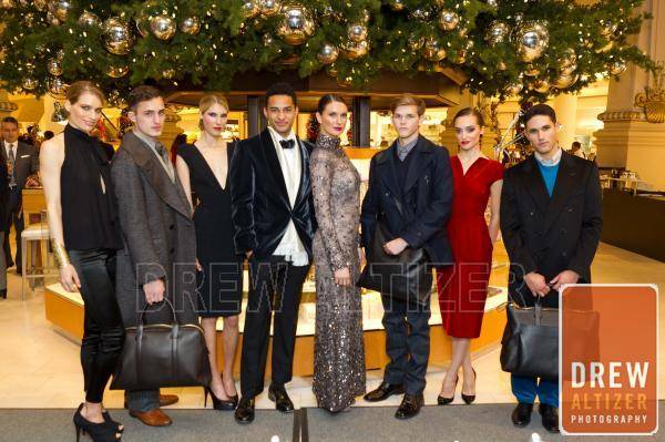 Set against the backdrop of the towering twinkling tree inside the Rotunda of Neiman Marcus San Francisco and the jewel-box in-store boutique spaces, Tom Ford Beauty launched with the expected glamour and panache. Both male and female models showed off the impeccable tailoring and couture-like details of the Tom Ford ready-to-wear line. Female models wore a bustier shaped plush crimson velvet dress, a sexy chic leather pants and silk blouse, a minimalistic plunging neckline black cocktail dress and the show-stopping, broken crystal dress that Anne Hathaway wore when hosting the Oscars. The men were equally dapper in a luxe smoky graphite velvet blazer to an electrique azure coloured suit.
