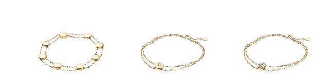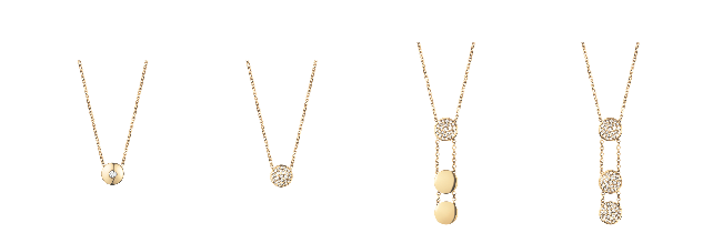 The elegant jewelery pieces including bracelets, rings, necklaces and earrings are based on circular forms connected by vivid feminine chains. The jewelery’s sensual movement brings life to the collection and gives each jewellery piece a delicate sense of lightness and feminine elegance.